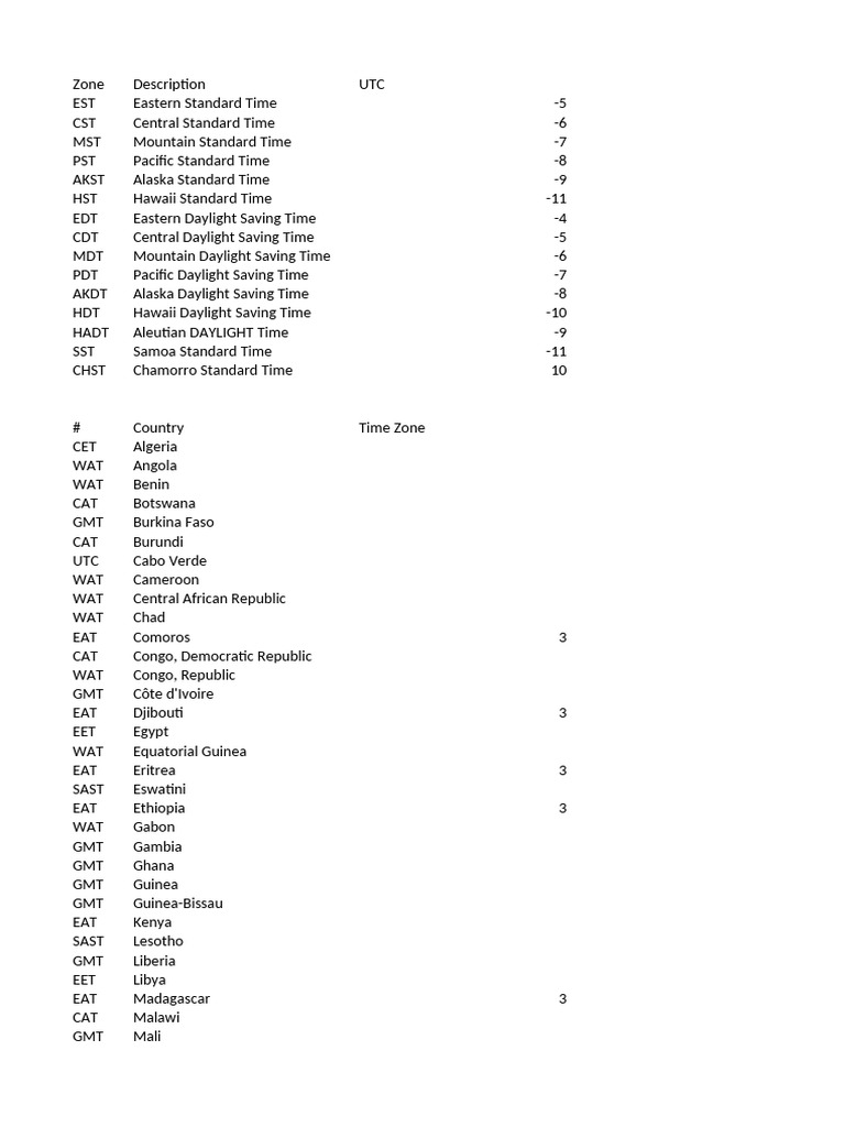 # Country Time Zone