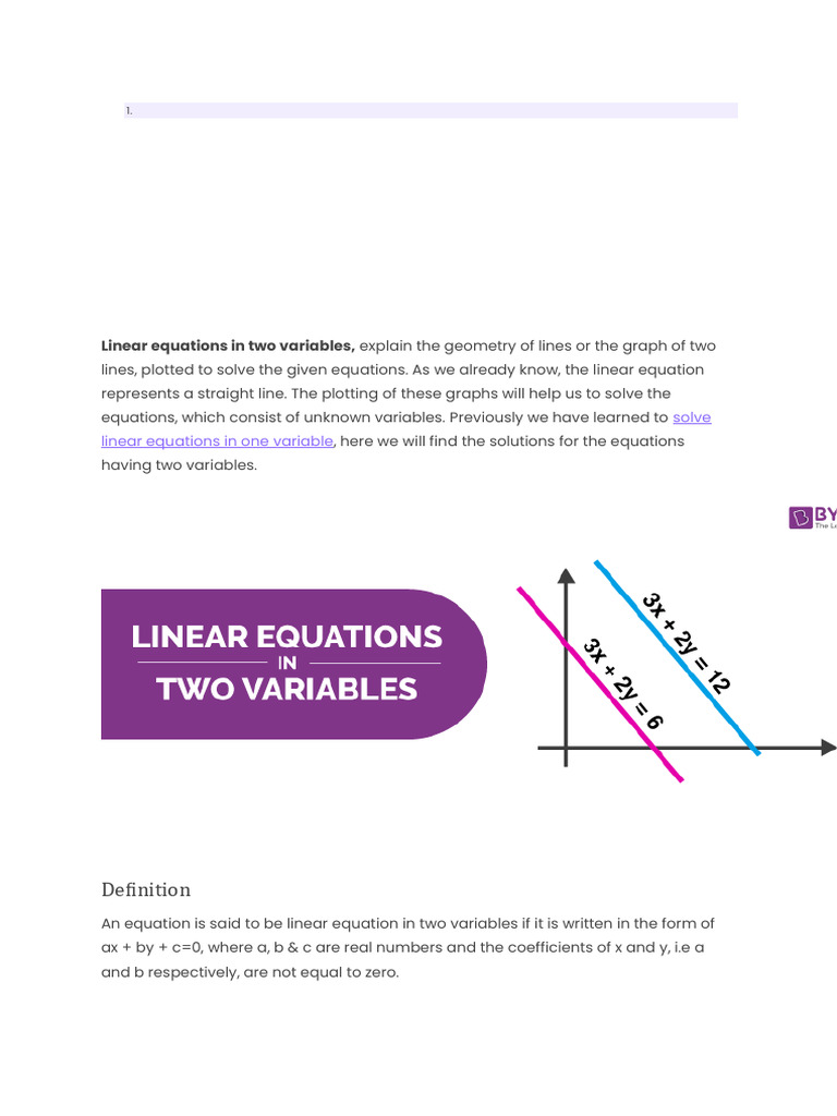 For example, 10x+4y = 3 and -x+5y = 2 are linear equations in two variables.
