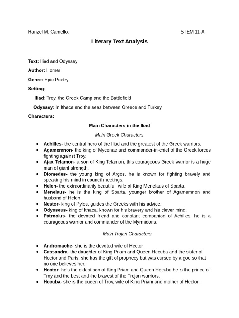 Main Characters in the Iliad