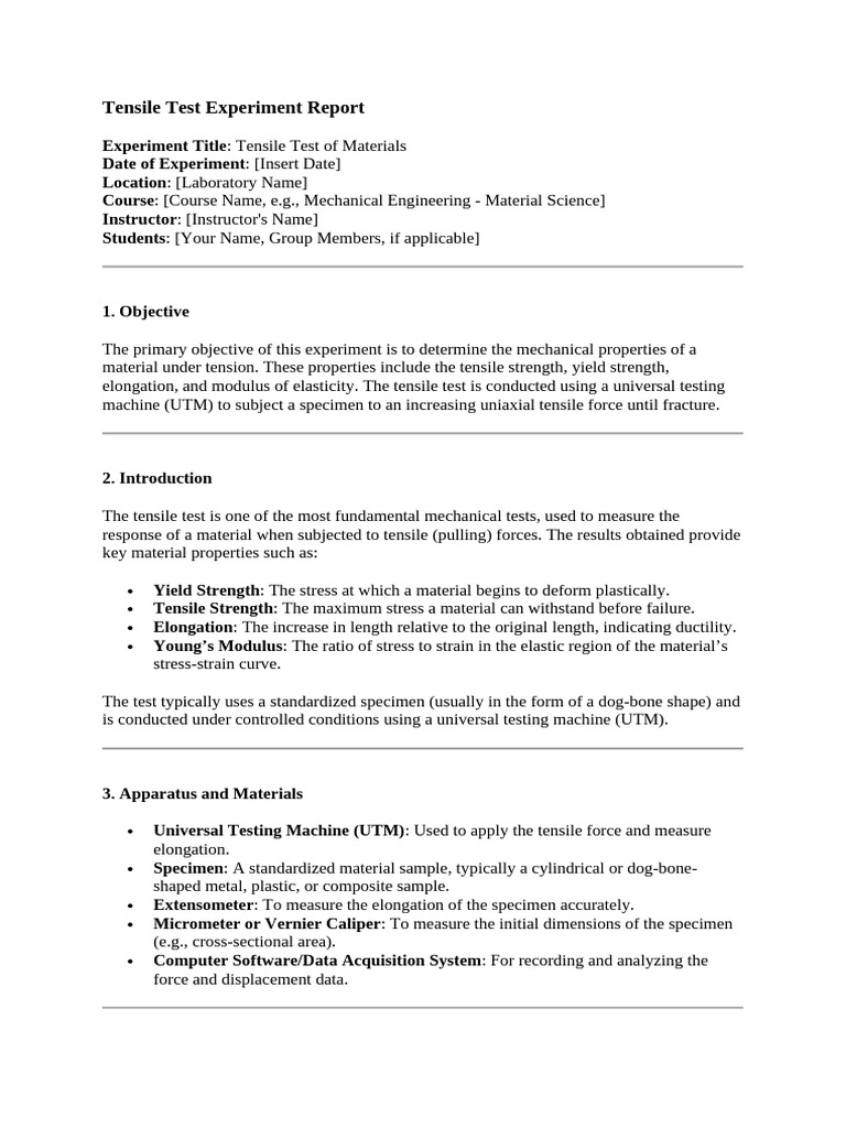 Tensile Test Experiment Report
