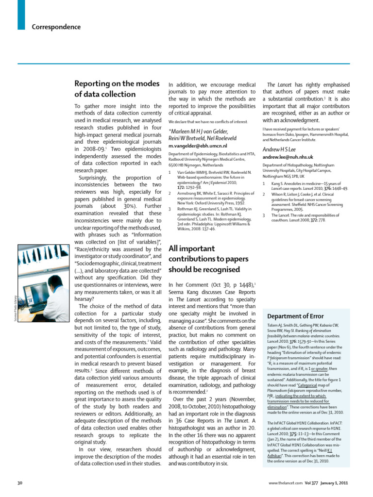 inconsistencies between the two 172: 1292–98. Lancet case reports. Lancet 2010; 376: 1448–49.