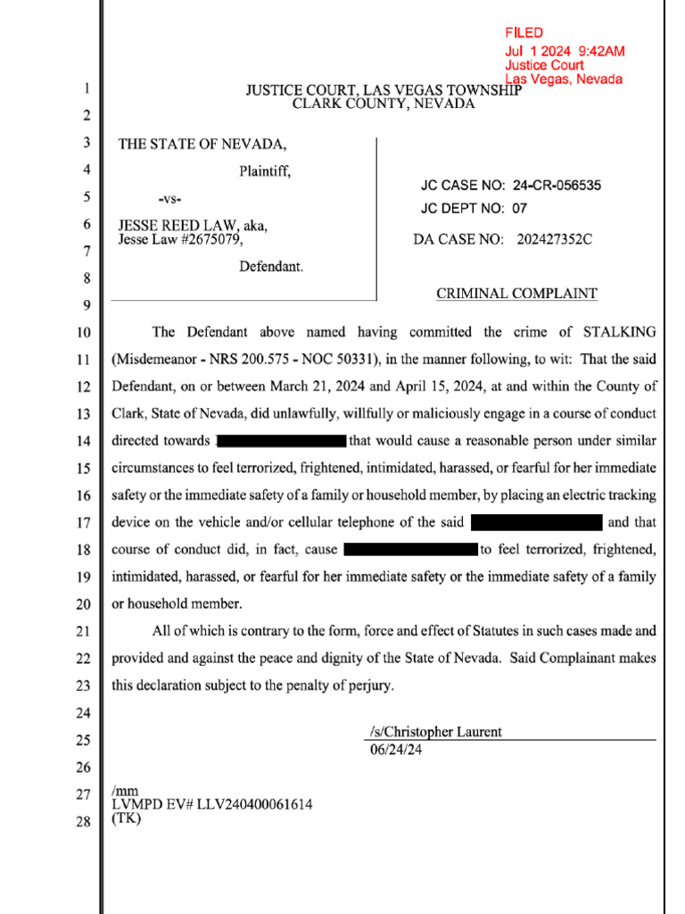 Clark, State of Nevada, did unlawfully, willfully or maliciously engage in a course of conduct