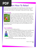 • Breathe out more slowly than you breathe in (for example, 5 seconds in and 7