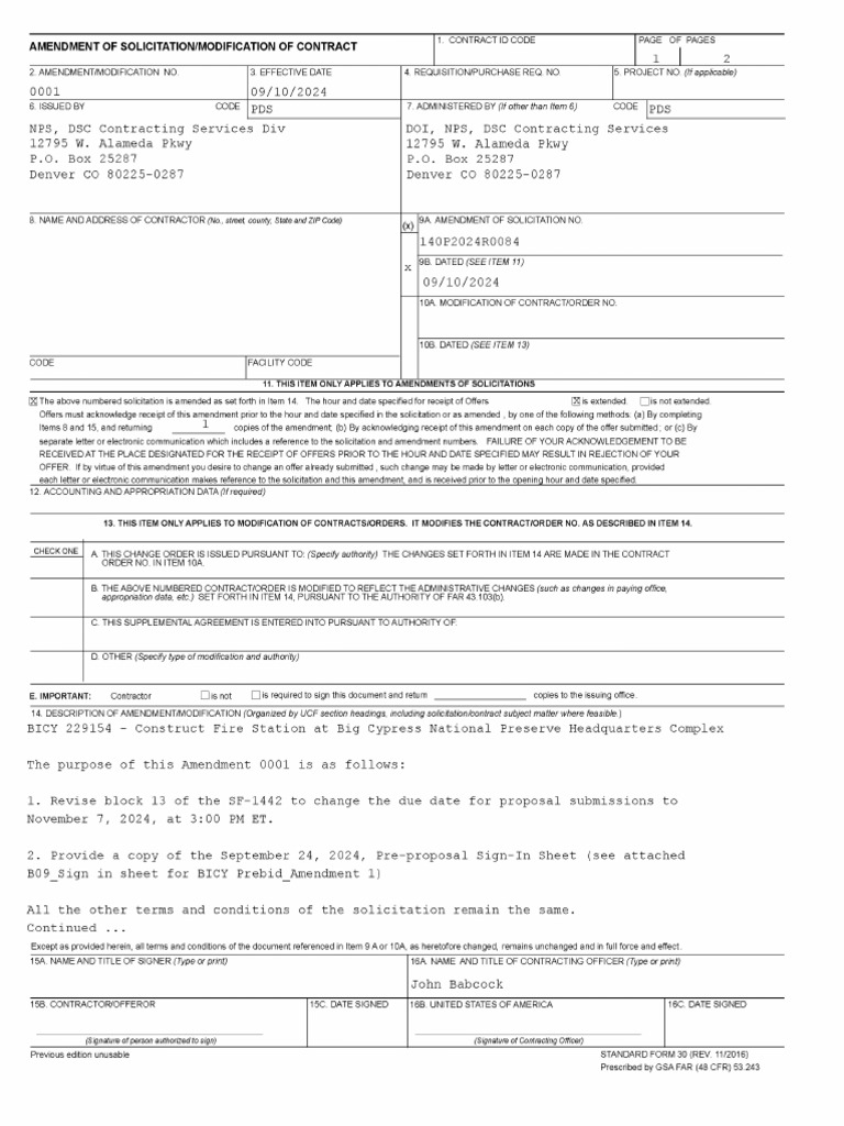 Project: BICY 229154 Construct Fire Station at Big Cypress National Preserve Headquarters Complex