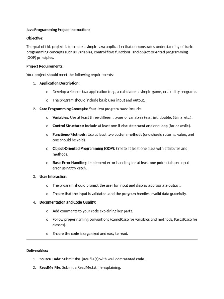 o Develop a simple Java application (e.g., a calculator, a simple game, or a utility program).