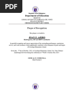 In recognition of his/her outstanding performance and in