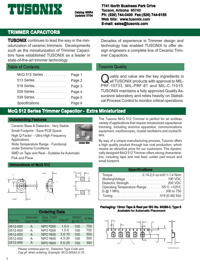 iaturization of ceramic trimmers. Developments technology has enabled TUSONIX to offer de-