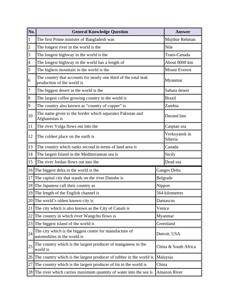 General Knowledge Question Answer