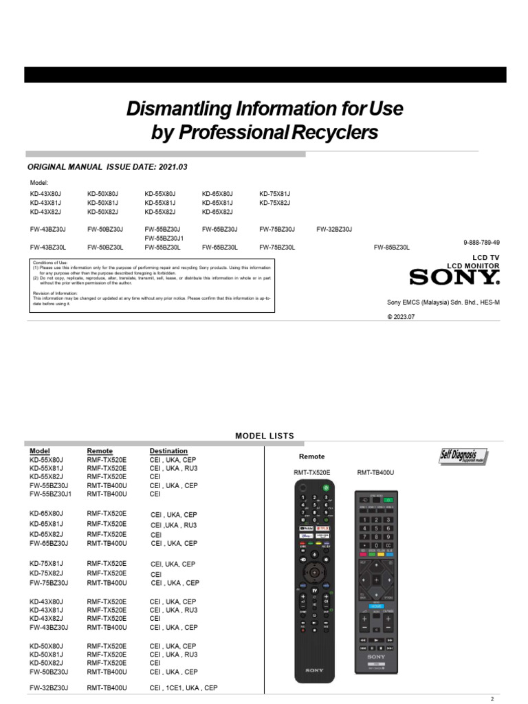 KD-43X80J KD-50X80J KD-55X80J KD-65X80J KD-75X81J
