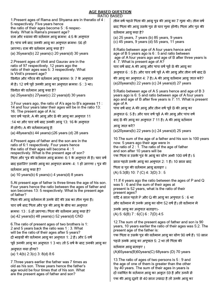 जाएगा। राम क वतमान आयु या है? 8.Ratio between age of A four years hence and