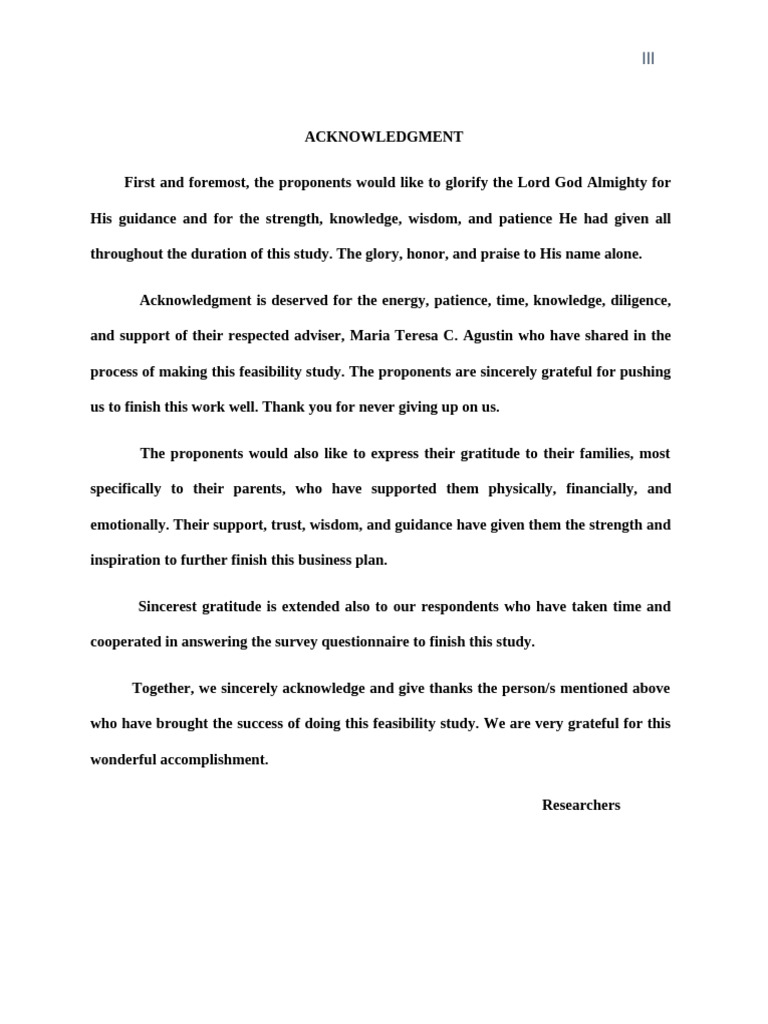 We would like to dedicate this feasibility study to our Almighty God, who gave us life