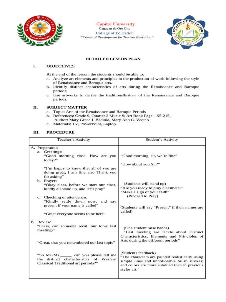 a. Topic: Arts of the Renaissance and Baroque Periods