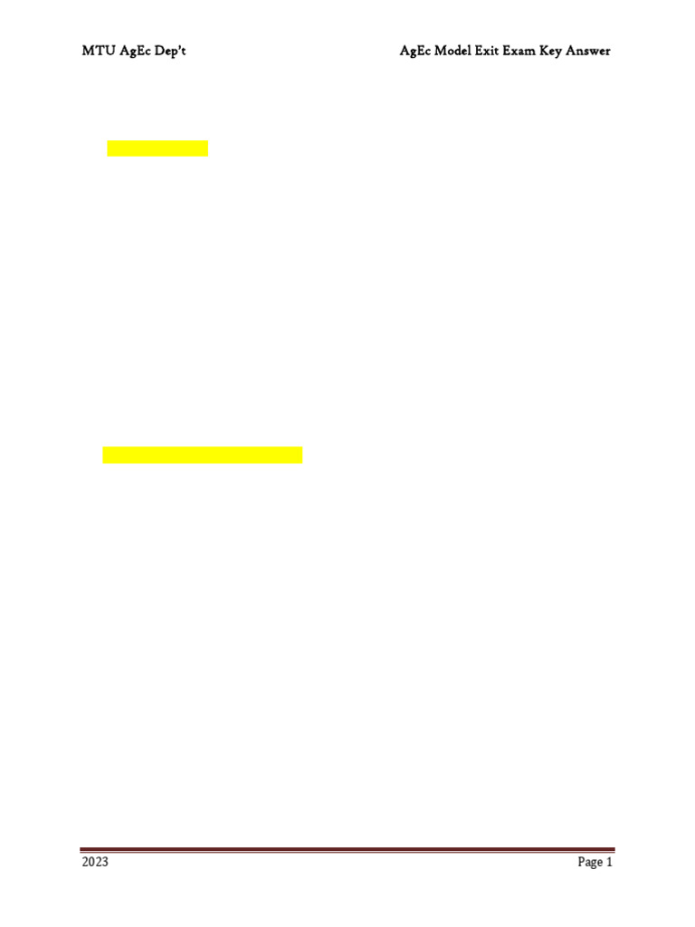 MTU AgEc Dep’t AgEc Model Exit Exam Key Answer