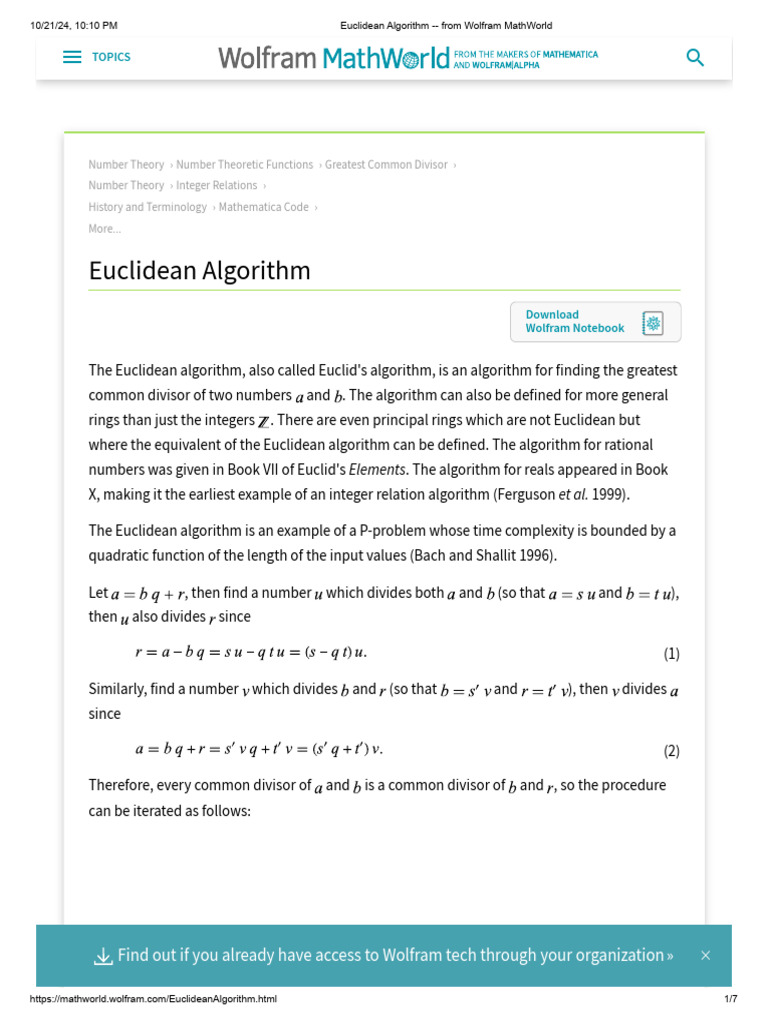 10/21/24, 10:10 PM Euclidean Algorithm -- from Wolfram MathWorld