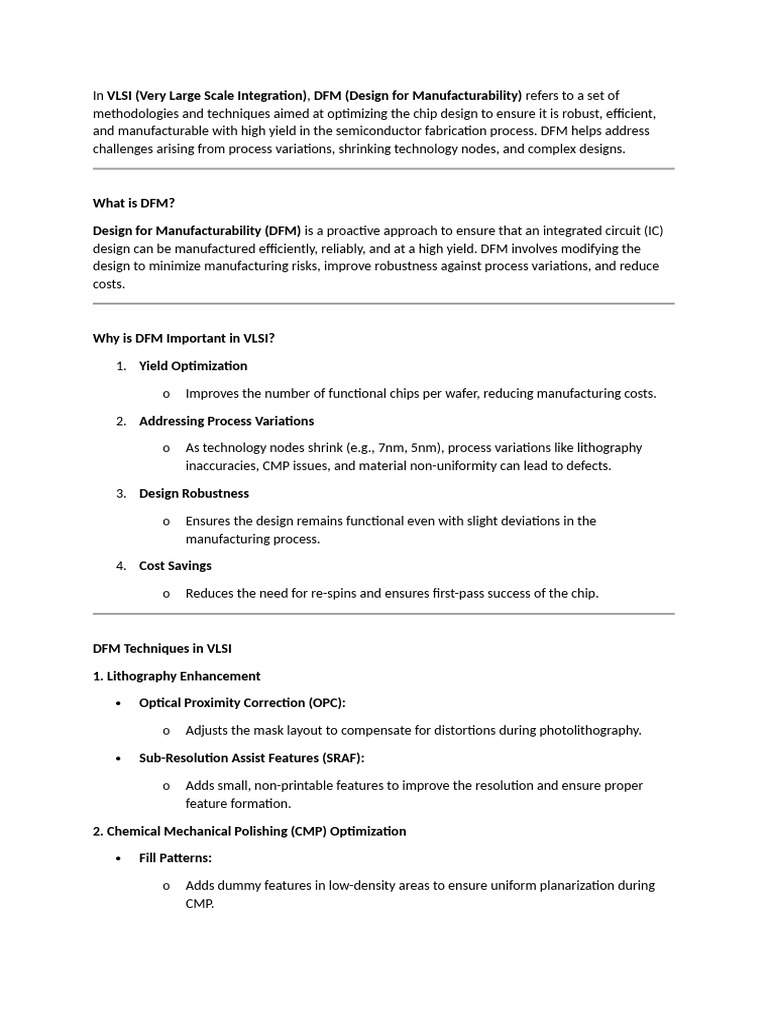 DFM is an essential aspect of VLSI design, ensuring that chips are manufacturable, cost-effective, and