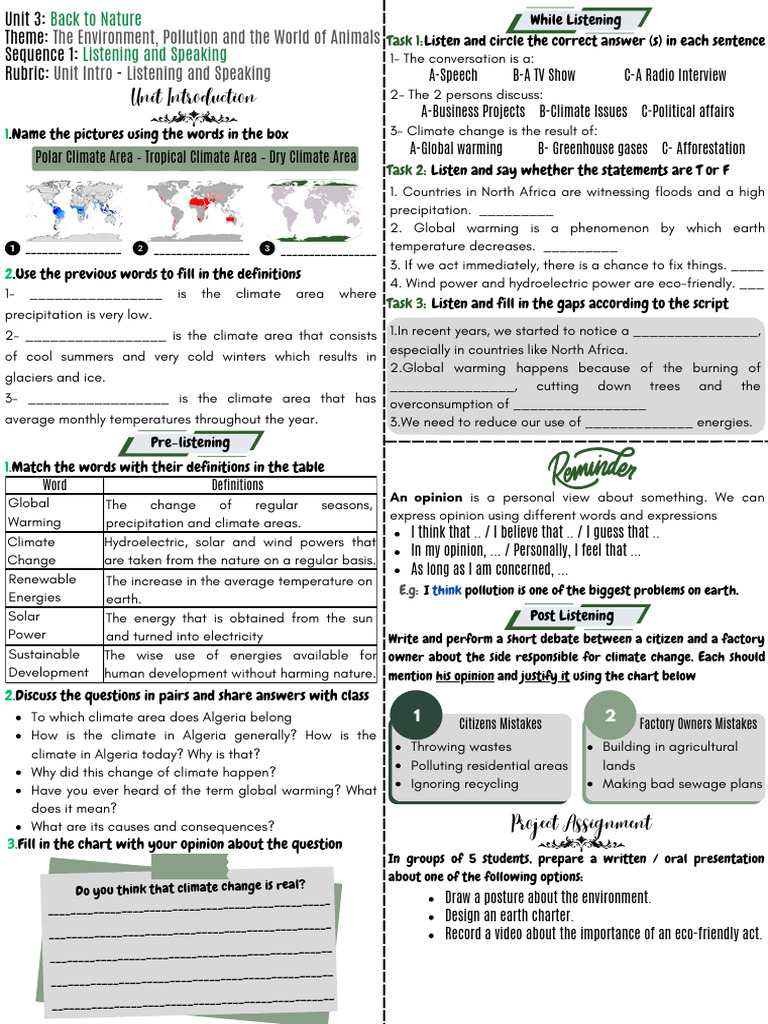 Theme: The Environment, Pollution and the World of Animals Task 1: Listen and circle the correct answer (s) in each sentence