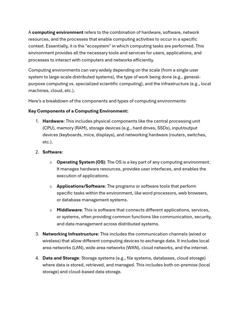 Here’s a breakdown of the components and types of computing environments: