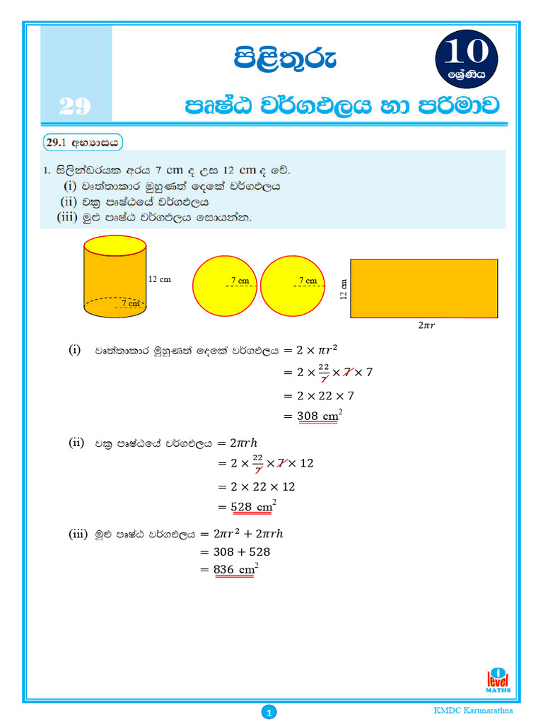 (i) = 7 cm , =3080 cm3 , ℎ =?