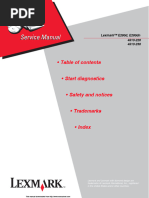 d'acomplir les estrictes normes de seguretat globals amb la utililitzaci de components especfics de Lexmark. Les caracterstiques de seguretat d'algunes peces pot ser que no sempre siguin bvies. Lexmark no es responsabilitza de l'us d'altres peces de recanvi. La informaci pel manteniment daquest producte est orientada exclusivament a professionals i no est destinada a ning que no ho sigui. El risc de xoc elctric i de danys personals pot augmentar durant el procs de desmuntatge i de servei daquest producte. El personal professional ha destar-ne assabentat i prendre les mesures convenients.
