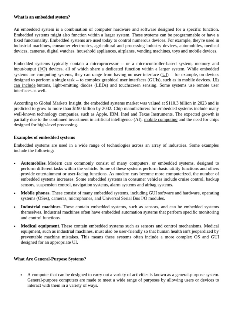 input/output (I/O) devices, all of which share a dedicated function within a larger system. While embedded