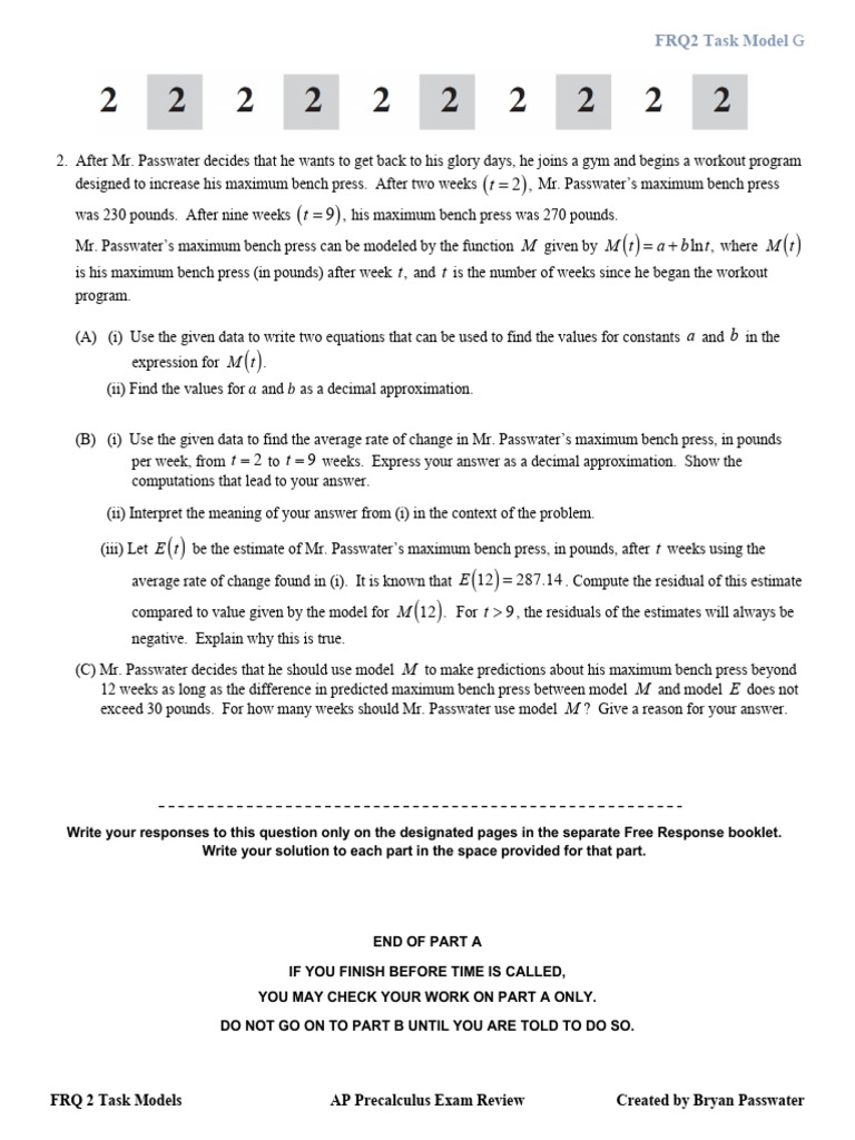 FRQ 2 Task Models AP Precalculus Exam Review Created by Bryan Passwater