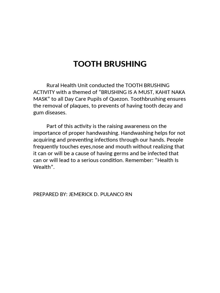 Rural Health Unit conducted the TOOTH BRUSHING