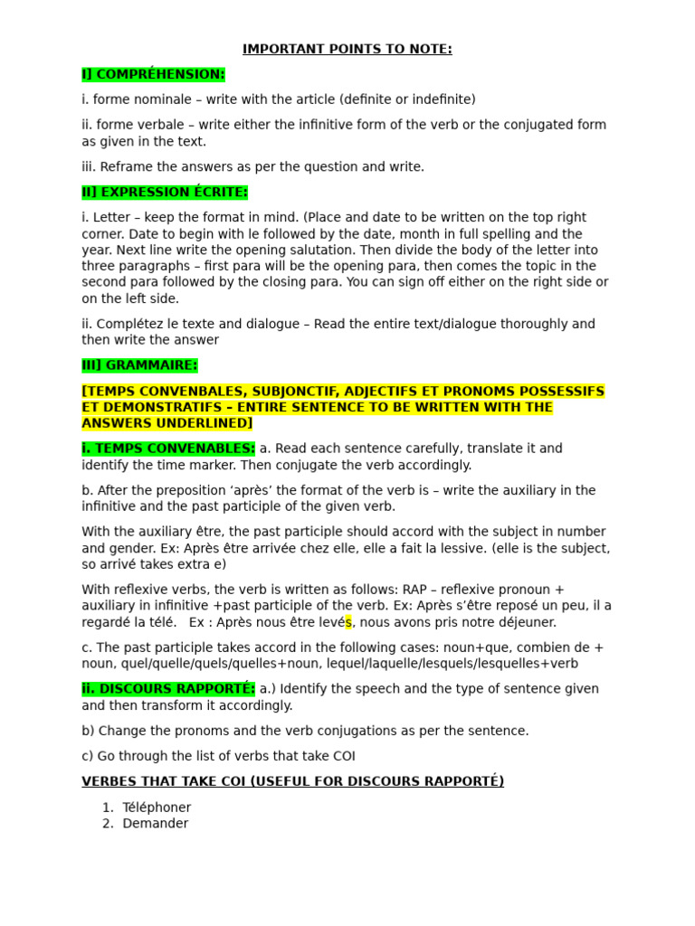 [TEMPS CONVENBALES, SUBJONCTIF, ADJECTIFS ET PRONOMS POSSESSIFS