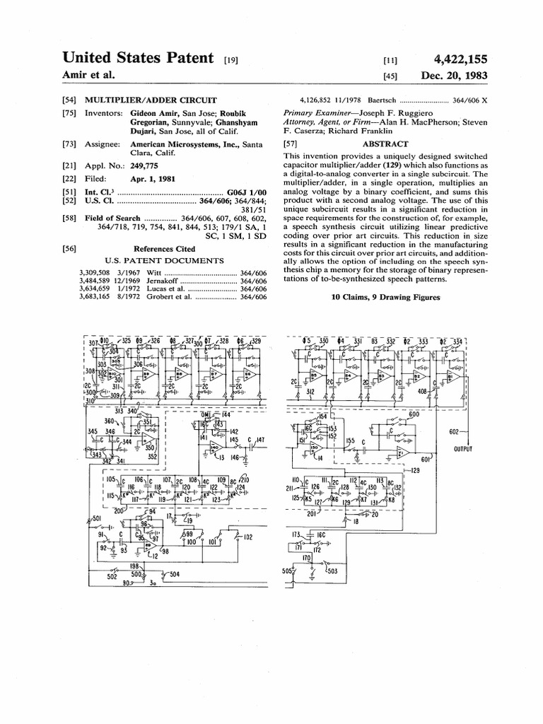 US4422155 (1981) - AMI-Multiplier Adder Circuit