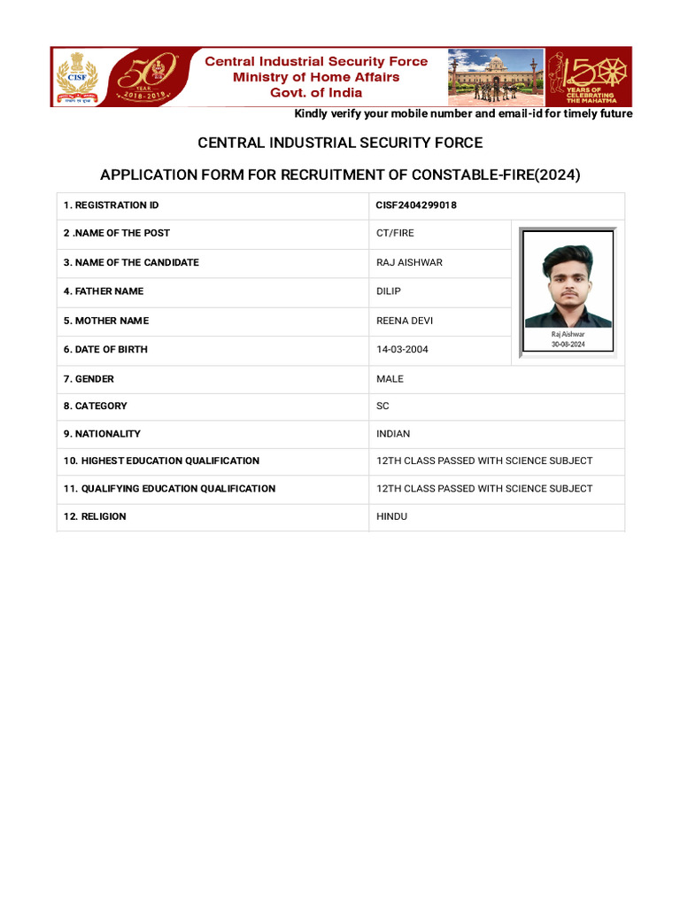 1. REGISTRATION ID CISF2404299018