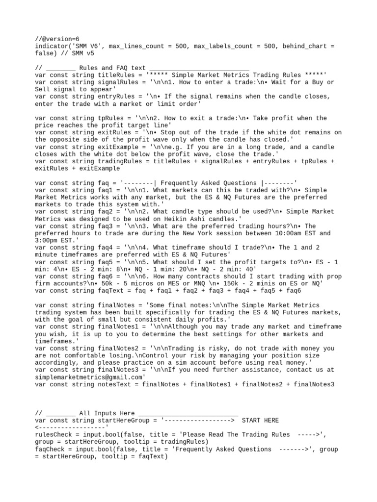 var const string titleRules = '***** Simple Market Metrics Trading Rules *****'