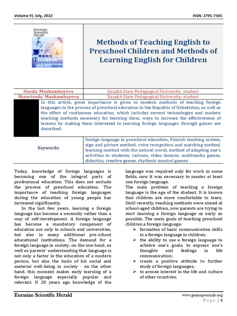 languages, this is the first step for their future 15. Samarova, S. (2018). Forming Creative