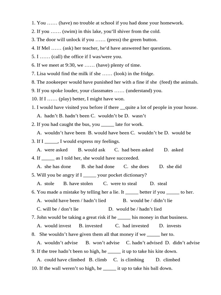 4. If Mel …… (ask) her teacher, he‘d have answered her questions.