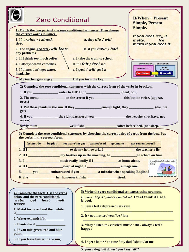 2) Complete the zero conditional sentences with the correct form of the verbs in brackets.