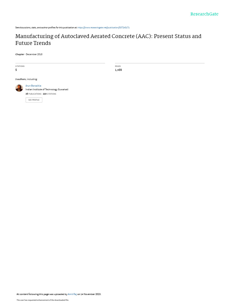 Manufacturing of Autoclaved Aerated Concrete (AAC): Present Status and