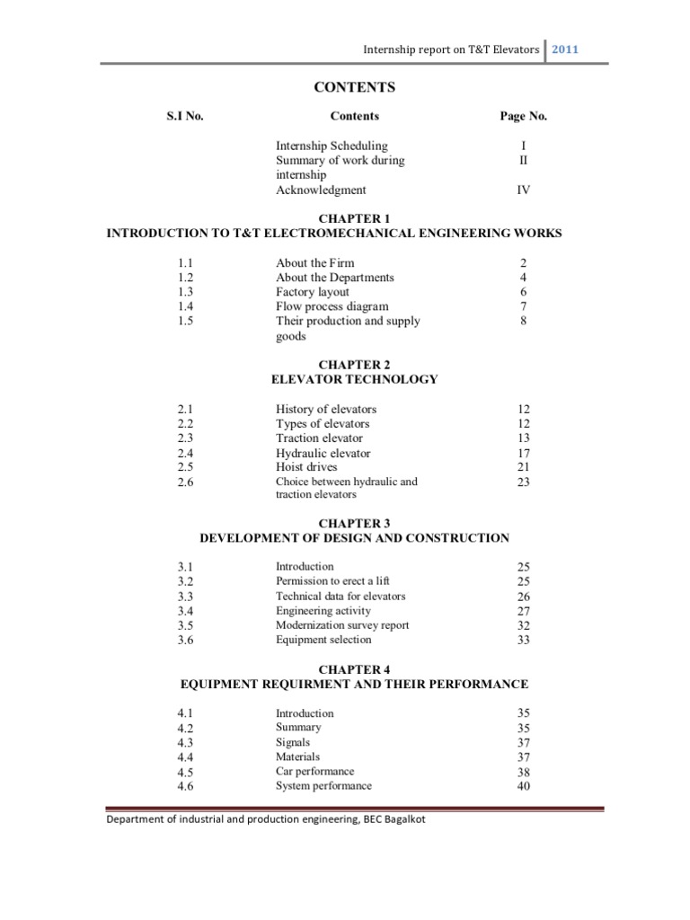 CHAPTER 1 INTRODUCTION TO T&T ELECTROMECHANICAL ENGINEERING WORKS 1.1 1.2 1.3 1.4 1.5 About the Firm About the Departments Factory layout Flow process diagram Their production and supply goods CHAPTER 2 ELEVATOR TECHNOLOGY 2.1 2.2 2.3 2.4 2.5 2.6 History of elevators Types of elevators Traction elevator Hydraulic elevator Hoist drives