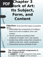 - You will examine the merit of the art. Merit is when the artist has successfully accomplished