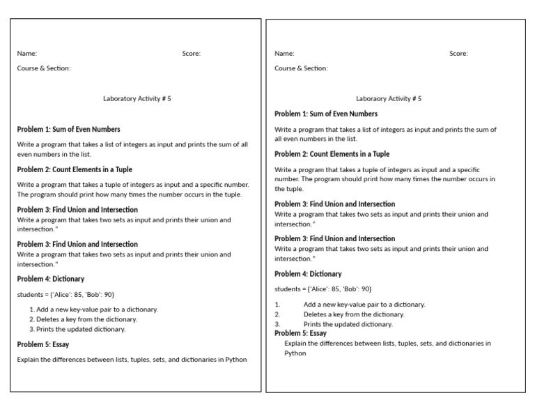Problem 5: Essay Explain the differences between lists, tuples, sets, and dictionaries in