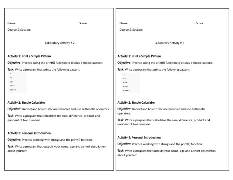 Activity 1: Print a Simple Pattern Activity 1: Print a Simple Pattern