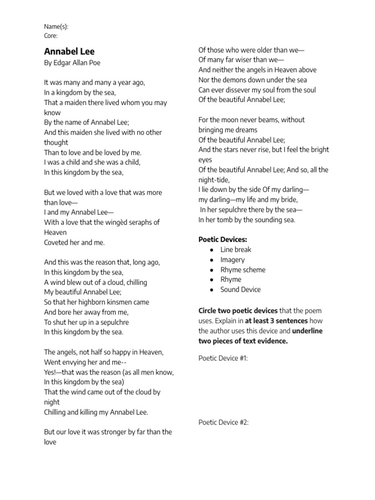 thought Of the beautiful Annabel Lee;