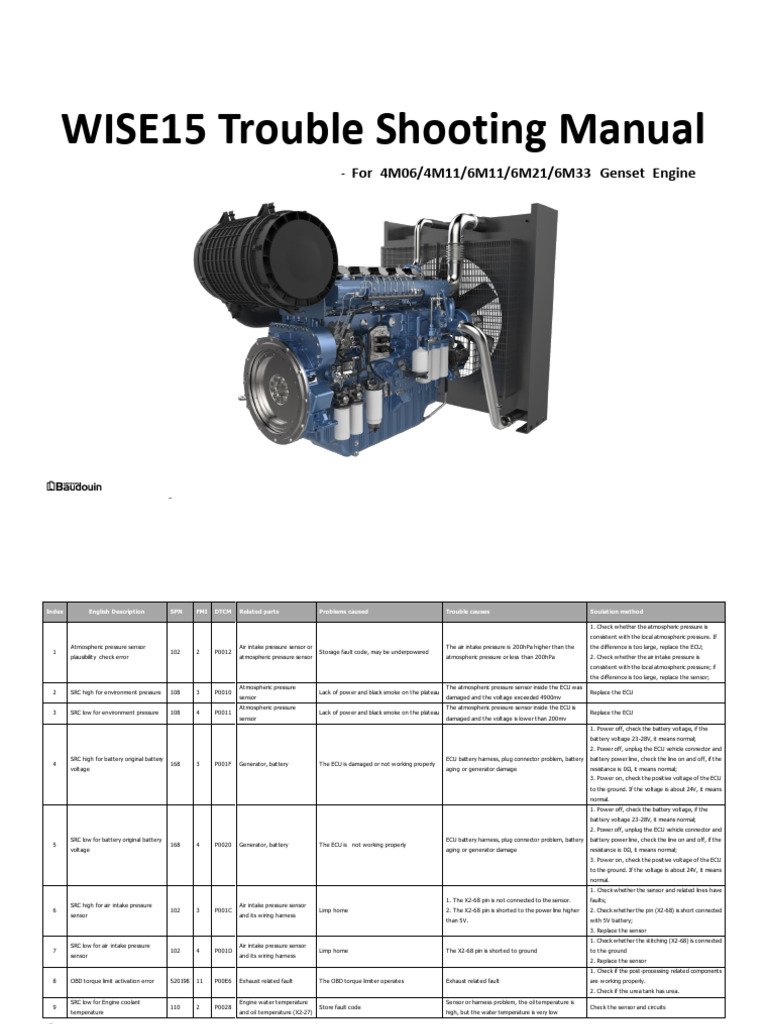 Index English Description SPN FMI DTCM Related parts Problems caused Trouble causes Soulation method