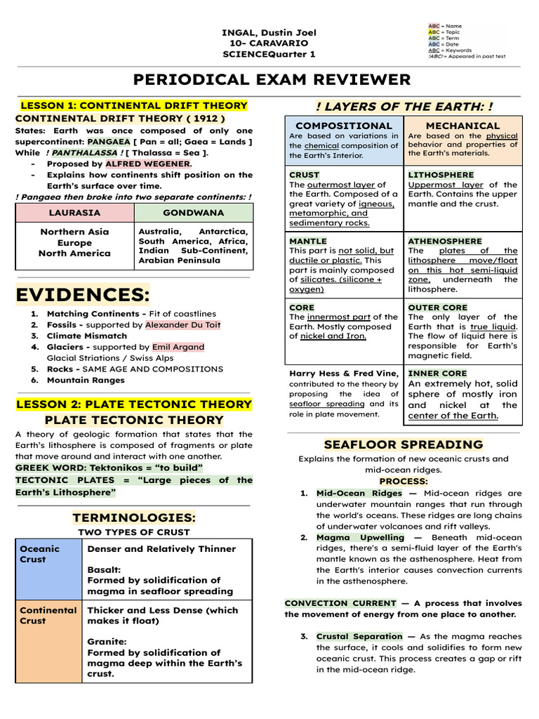 LESSON 1: CONTINENTAL DRIFT THEORY ! LAYERS OF THE EARTH: !