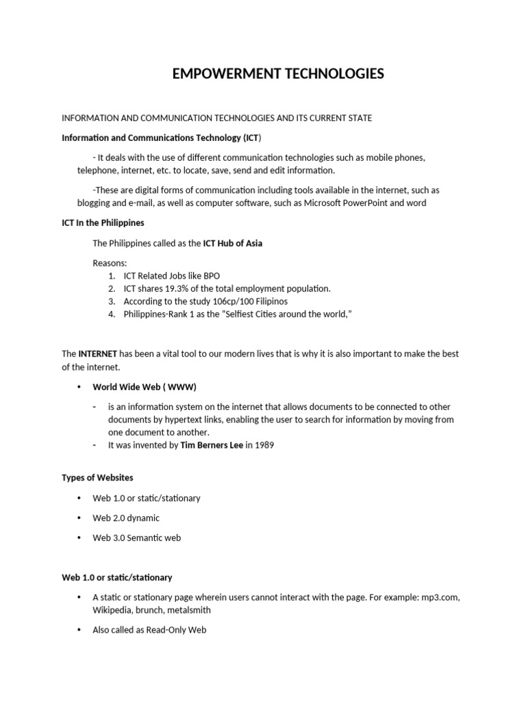 INFORMATION AND COMMUNICATION TECHNOLOGIES AND ITS CURRENT STATE