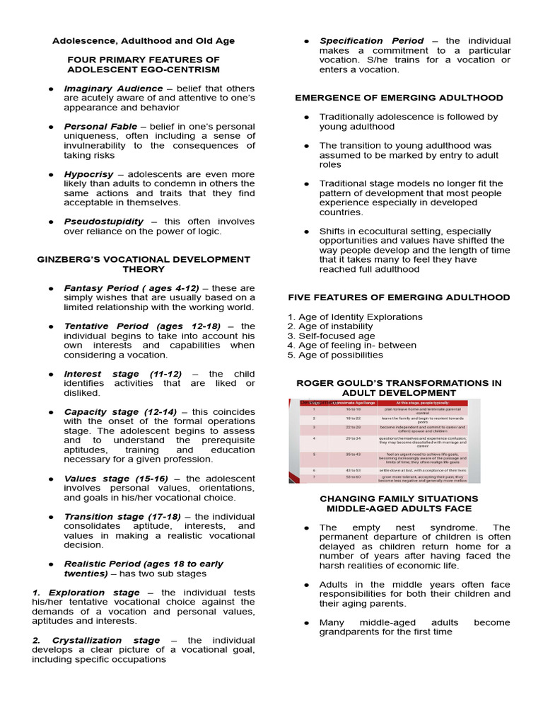 Adolescence, Adulthood and Old Age ● Specification Period – the individual
