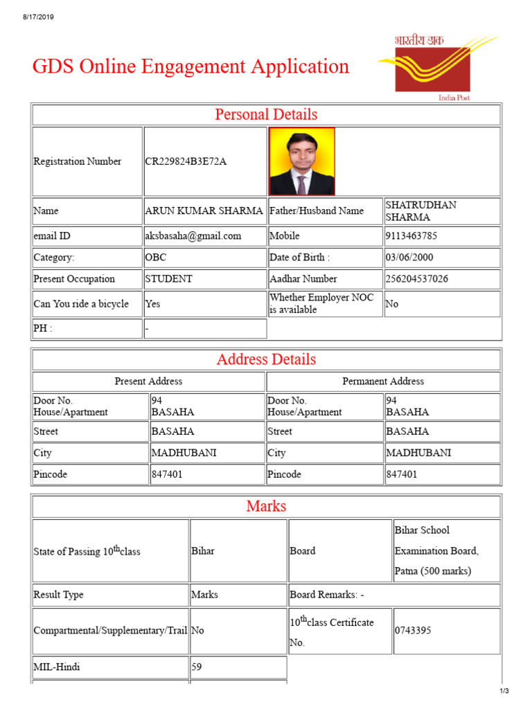 Present Occupation STUDENT Aadhar Number 256204537026