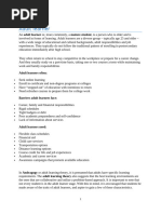 learning experience. Another difference is that most adult education is voluntary; therefore, the