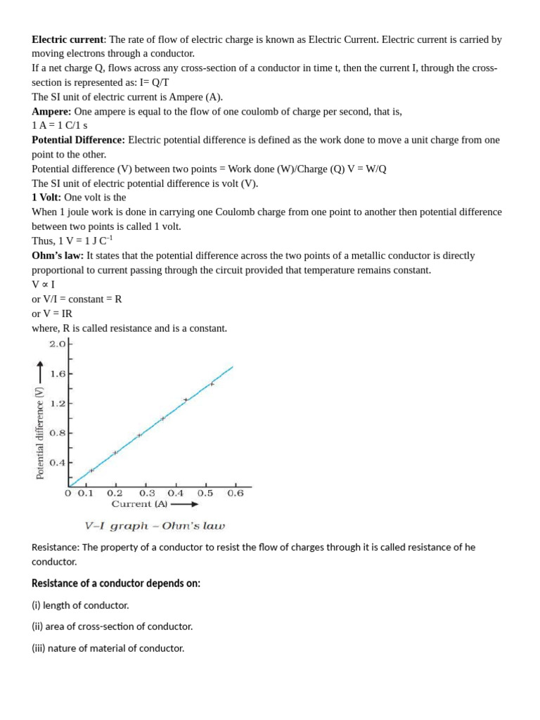 Potential difference (V) between two points = Work done (W)/Charge (Q) V = W/Q