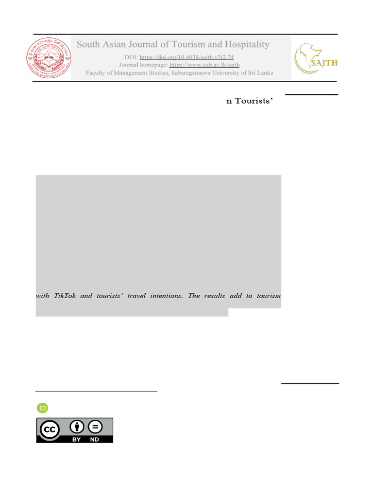with TikTok and tourists’ travel intentions. The results add to tourism