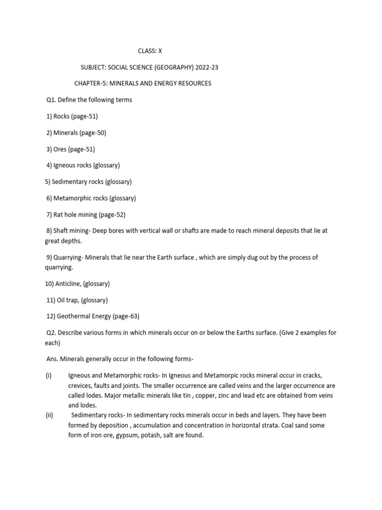 CHAPTER-5: MINERALS AND ENERGY RESOURCES