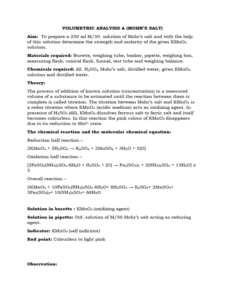 VOLUMETRIC ANALYSIS A (MOHR’S SALT)