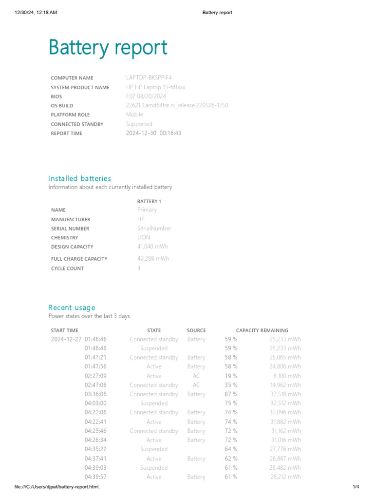 file:///C:/Users/djpat/battery-report.html. 1/4